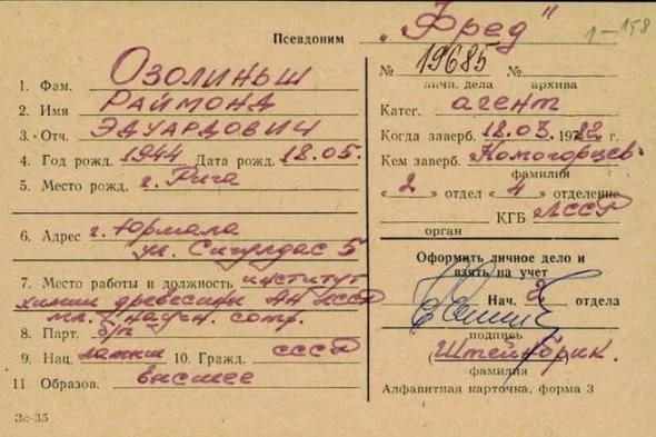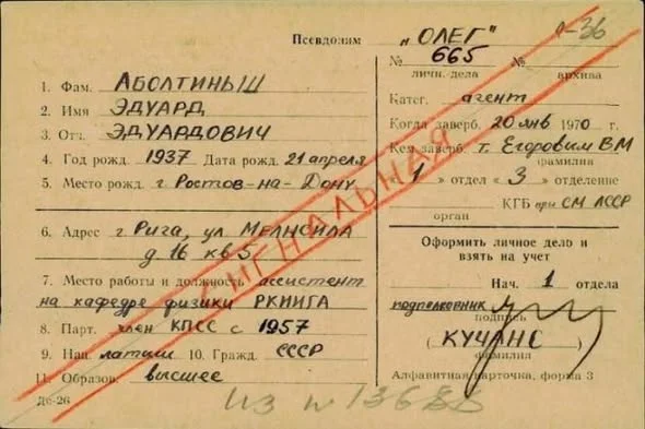 2. ԽՍՀՄ ՊԱԿ (КГБ) Լատվայում նույն վերագրվող թվերին հավաքագրման մի քանի փաստաթղթերի օրինակներ, որոնք այդ երկրում ՕՐԵՆՔի հիմքի վրա են գաղտնազերծվել։
