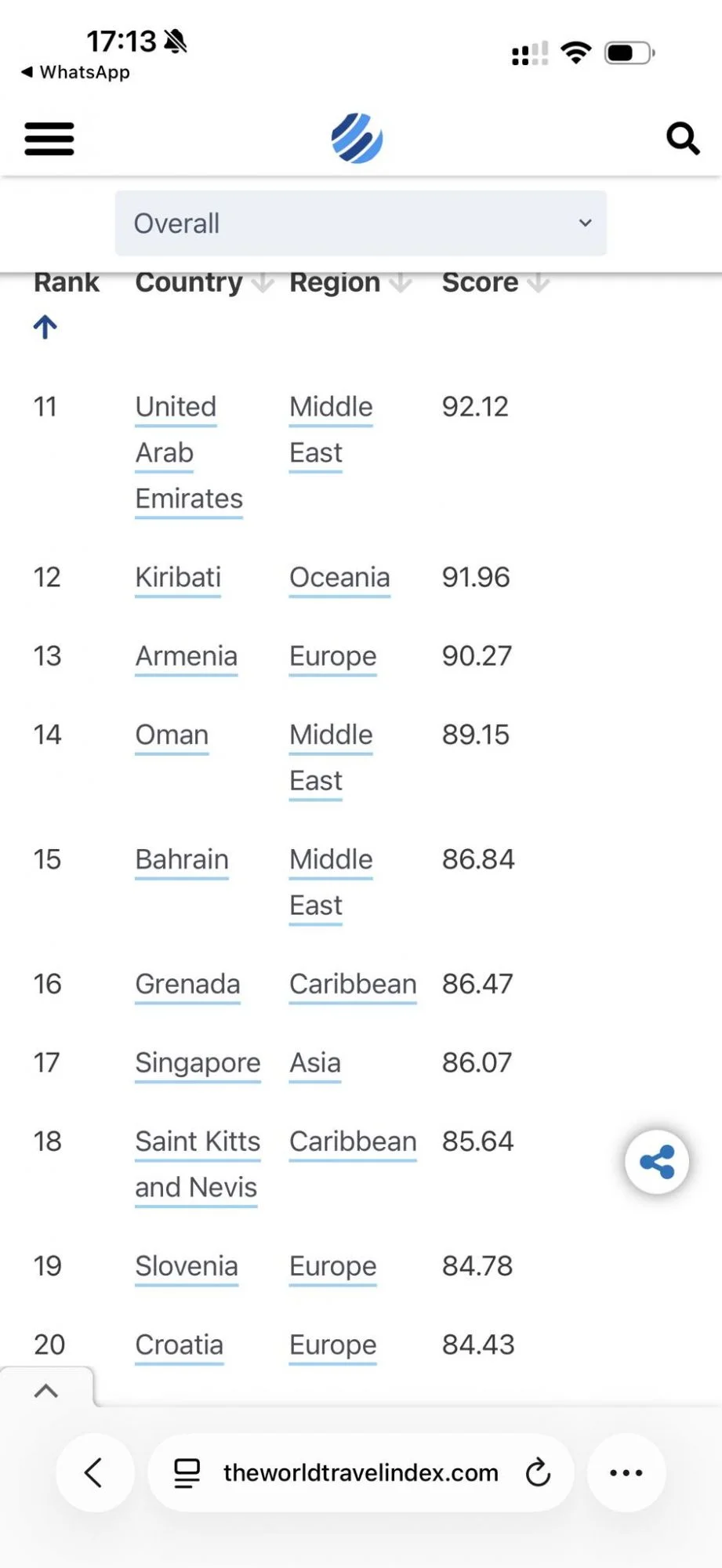 Ըստ World Travel Index-ի՝ Հայաստանը 193 երկրի շարքում 13-րդ տեղում է ՝ 90,27 ինդեքսով։