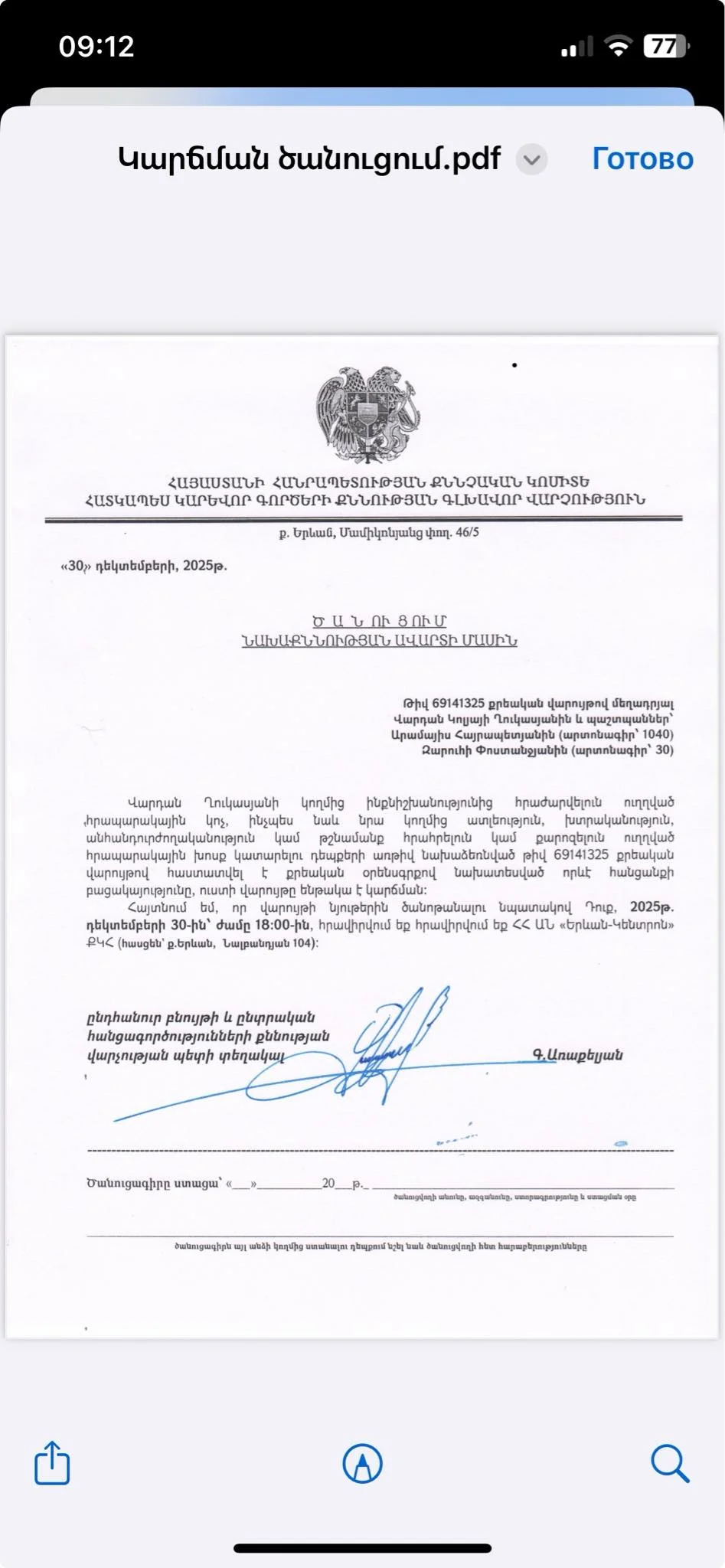 Կարճվել է Գյումրու քաղաքապետ Վարդան Ղուկասյանի դեմ հարուցված քրեական վարույթներից մեկը