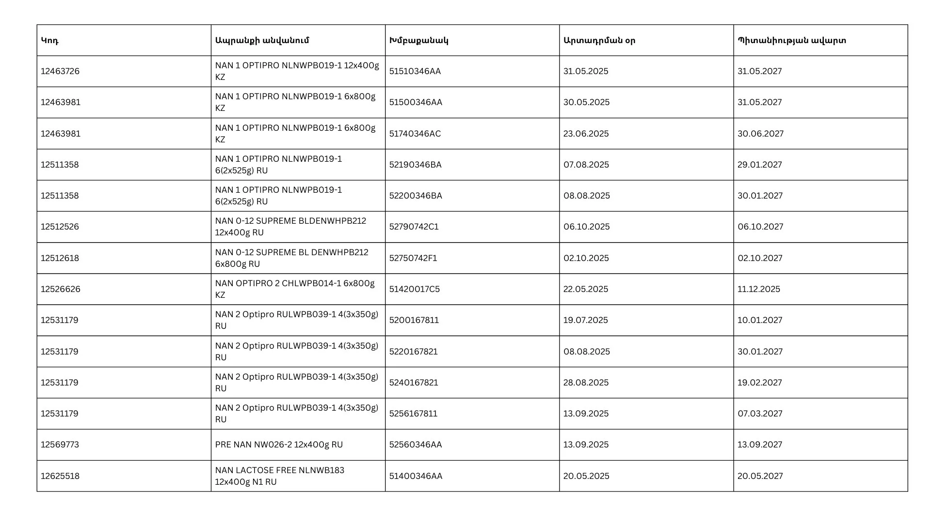 Սննդամթերքի անվտանգության տեսչական մարմնի պահանջով՝ NAN ապրանքանիշի նշված խմբաքանակները Հայաստանի Հանրապետություն ներմուծող ընկերություններն անմիջապես սկսել են հետկանչի՝ վաճառքի կետերից հավաքելու գործընթացը: