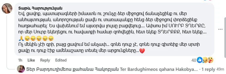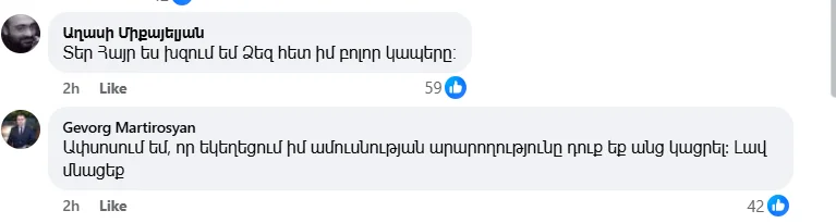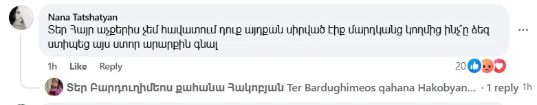 Արձագանքել են նաև հավատացյալներ, որոնք իրենց ափսոսանքն են հայտնել՝ կապված Բարդուղիմեոս քահանայի որոշման հետ։
