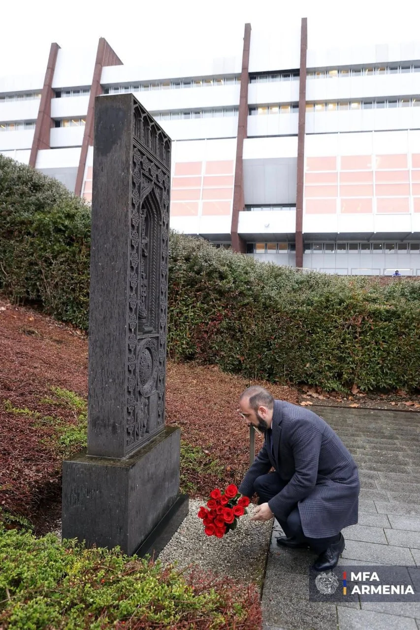 Միրզոյանը ծաղիկներ է խոնարհել Ստրասբուրգում կանգնեցված խաչքարի մոտ