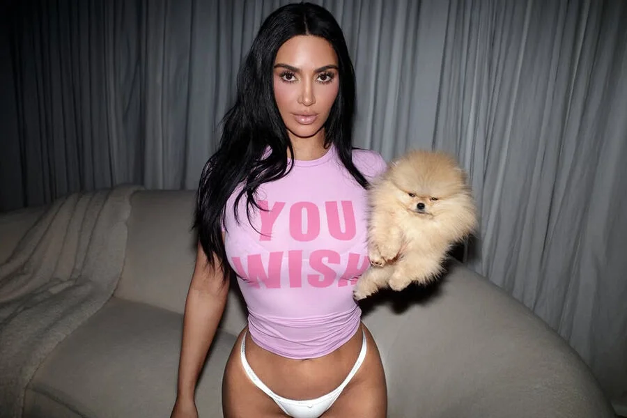 45-ամյա Քիմ Քարդաշյանը նկարահանվել է իր Skims ապրանքանիշի նոր հավաքածուի գովազդում, որը թողարկվել է Սուրբ Վալենտինի օրվան ընդառաջ։ Մոդելը կրել է վարդագույն տոպ և ճերմակ սթրինգ։ Գործարար կինը լուսանկարվել է արձակված մազերով և վառ դիմահարդարմամբ։