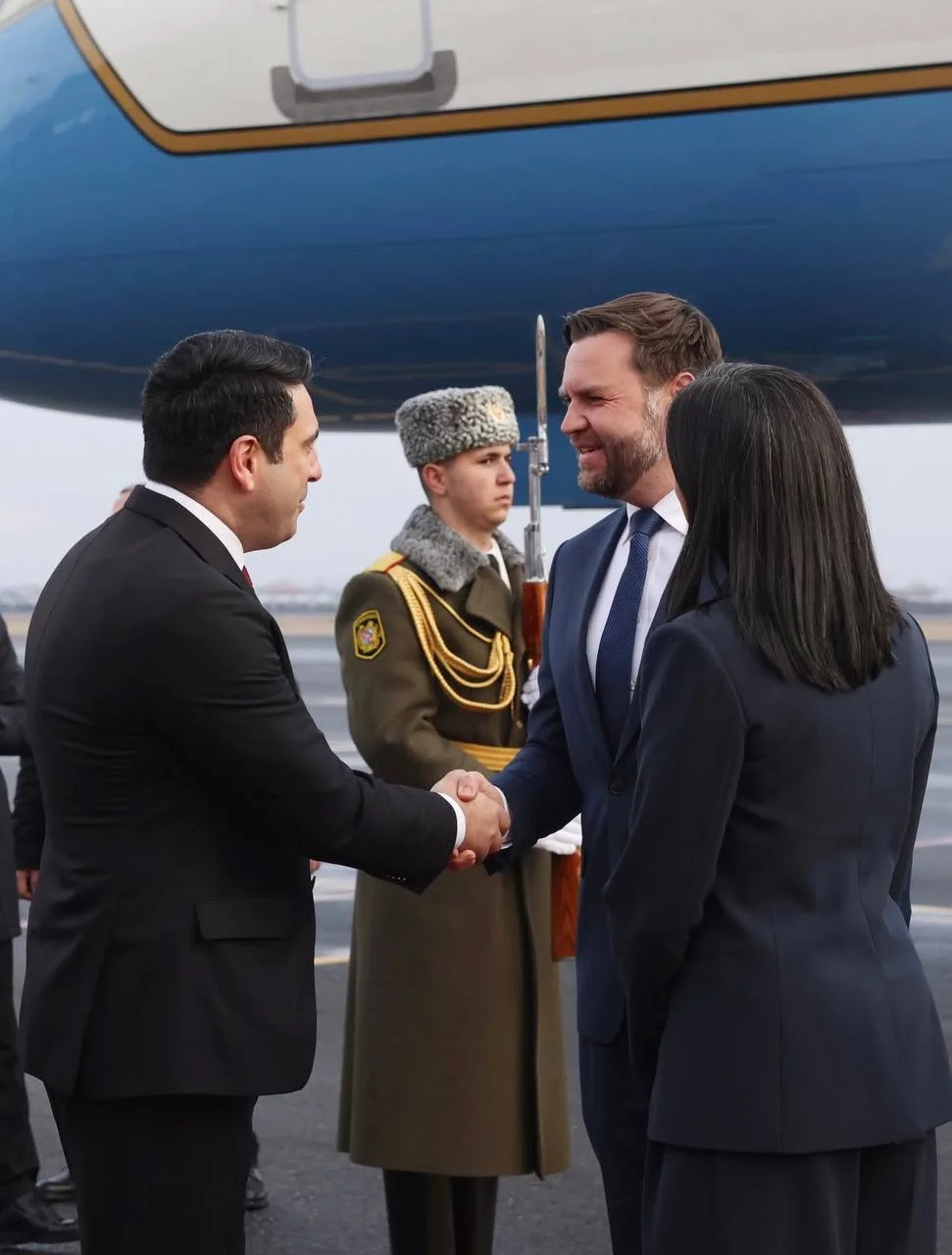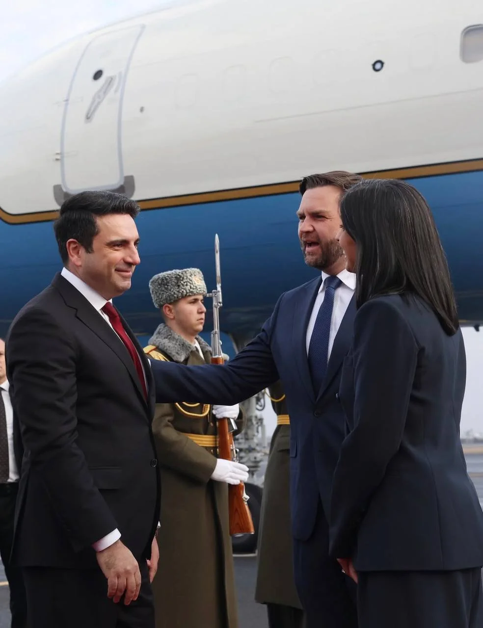 ՀՀ Ազգային ժողովի նախագահ Ալեն Սիմոնյանը լուսանկարներ է հրապարակել ԱՄՆ փոխնախագահ Ջեյ Դի Վենսի դիմավորման արարողությունից։