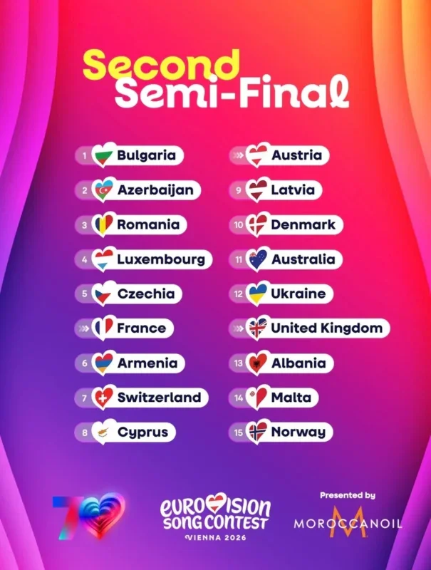 Հայաստանի ներկայացուցիչ Սիմոնը ելույթ է ունենալու «Եվրատեսիլ 2026»-ի երկրորդ կիսաեզրափակչում՝ 6-րդ համարի ներքո: Այս մասին տեղեկանում ենք մրցույթի պաշտոնական էջից: